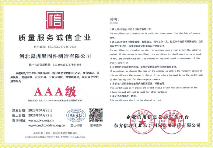河北森虎緊固件制造有限公司成立于2011年,是建廠較早的緊固件企業(yè)。西臨京廣線,東臨京深高速,地理位置優(yōu)越,交通便利。 主要生產(chǎn):化學(xué)錨栓、機(jī)械錨栓、定型化學(xué)錨栓、高強(qiáng)度8.8級(jí)化學(xué)錨栓、自切底機(jī)械錨栓、車修壁虎,膨脹螺栓,植筋膠。 質(zhì)量方針:先進(jìn)技術(shù)、科學(xué)管理、優(yōu)良品質(zhì)、用戶滿意; ...
